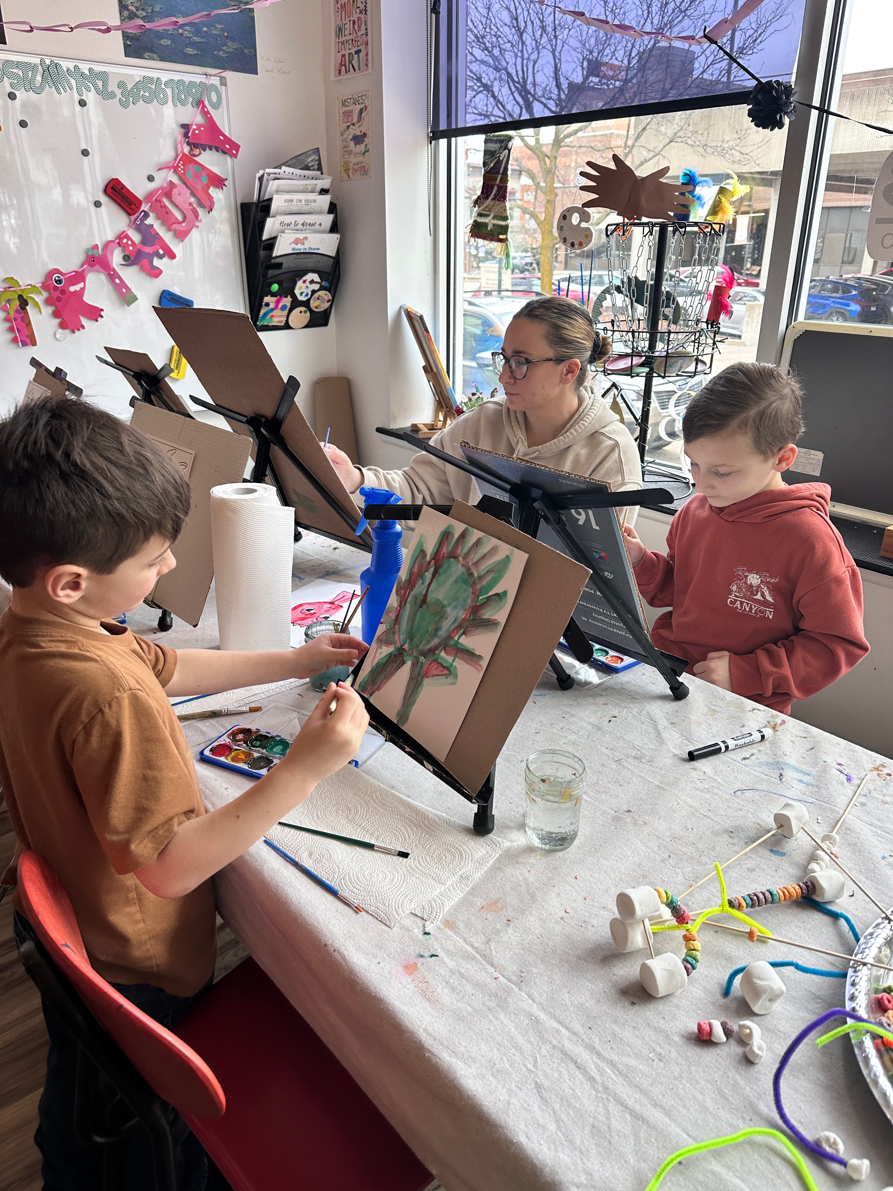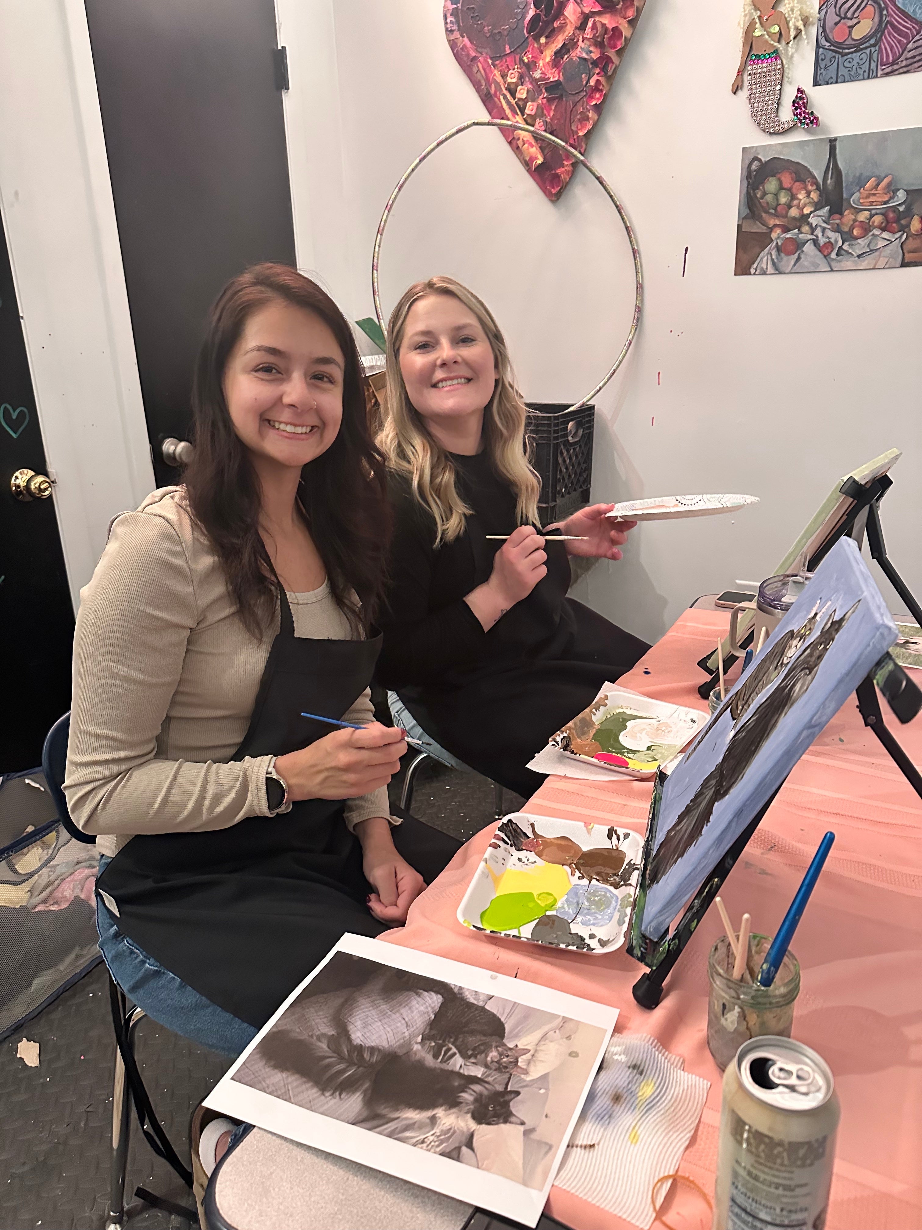 After earning my degree in Studio Art from Northern Illinois University, I built a career as a mural artist under Nora Kate Paints, creating hundreds of murals while sharing my love of art through paint parties, classrooms, and community projects. Today, as the owner of Brave Arts Creative Studio, I bring together my love of illustration, teaching, and community—creating a welcoming space where people of all ages can explore, connect, and discover their own creative bliss.